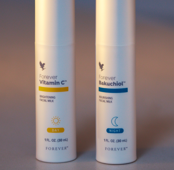 Αποκτήστε στοχευμένη περιποίηση της επιδερμίδας όλο το 24ωρο με ένα δίδυμο προϊόντων καθημερινής χρήσης που περιλαμβάνει το γαλάκτωμα λάμψης προσώπου Forever Vitamin C™ και το θρεπτικό γαλάκτωμα προσώπου Forever Bakuchiol
